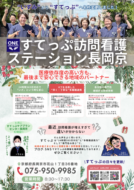 すてっぷ訪問看護ステーション長岡京の12月チラシ が出来上がりました✨