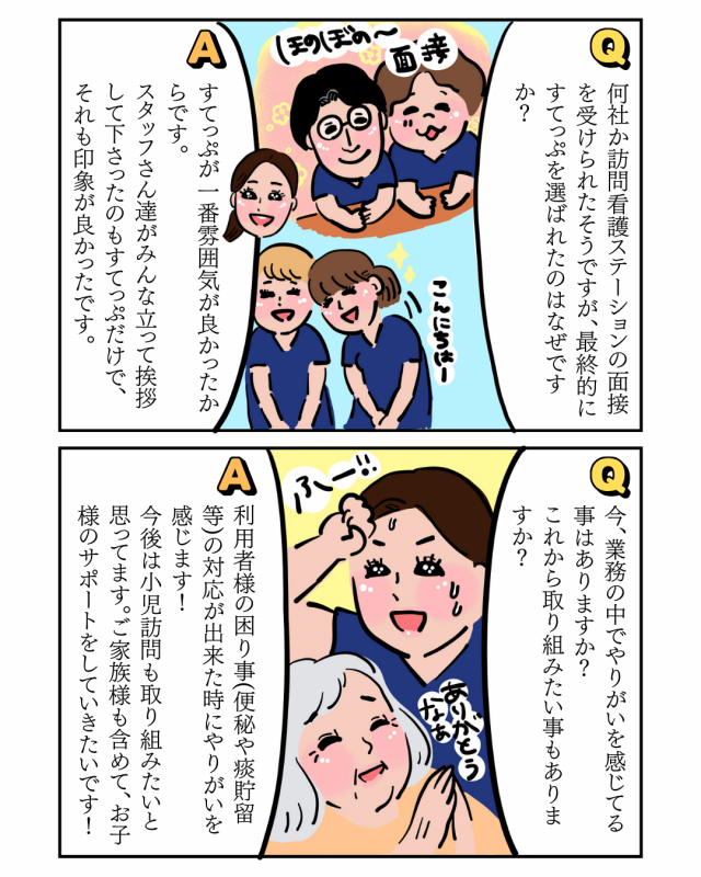 🐷Q 何社か訪問看護ステーションの面接を受けられたそうですが、最終的にすてっぷを選ばれたのはなぜですか?