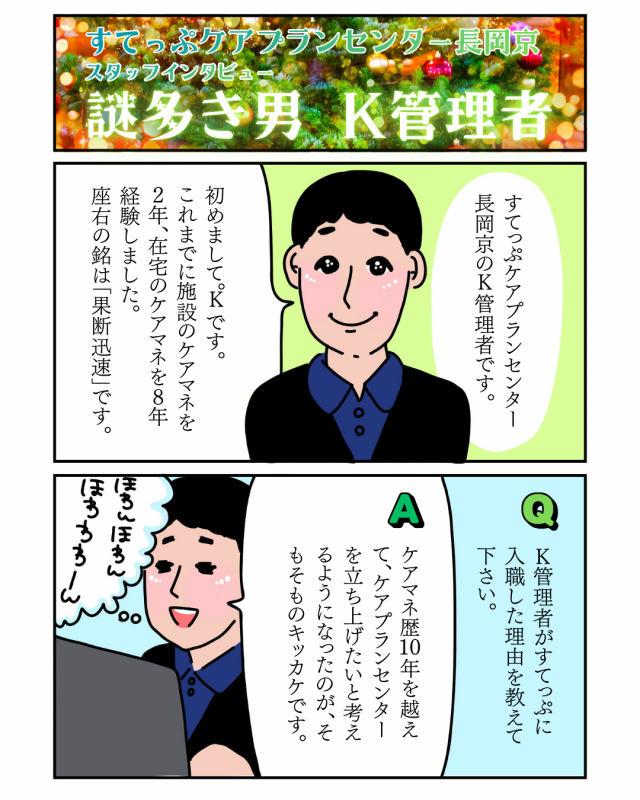 本日はすてっぷケアプランセンター長岡京の謎多き男 K管理者を紹介します✨レッツゴ~❗❗