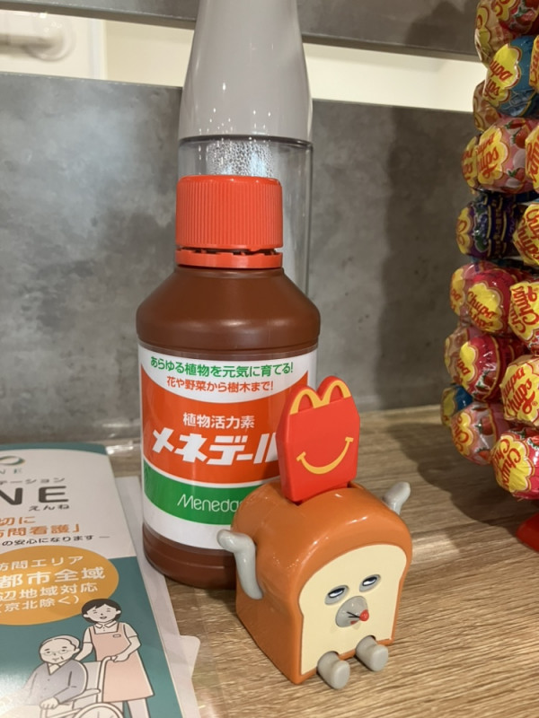 玄関先にシレっと植物活力剤「メネデール」が置かれています😁