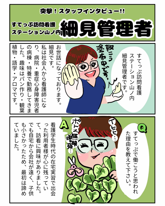 本日はすてっぷ訪問看護ステーション山ノ内の細見管理者を紹介します✨レッツゴ~❗❗
