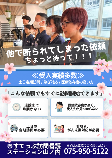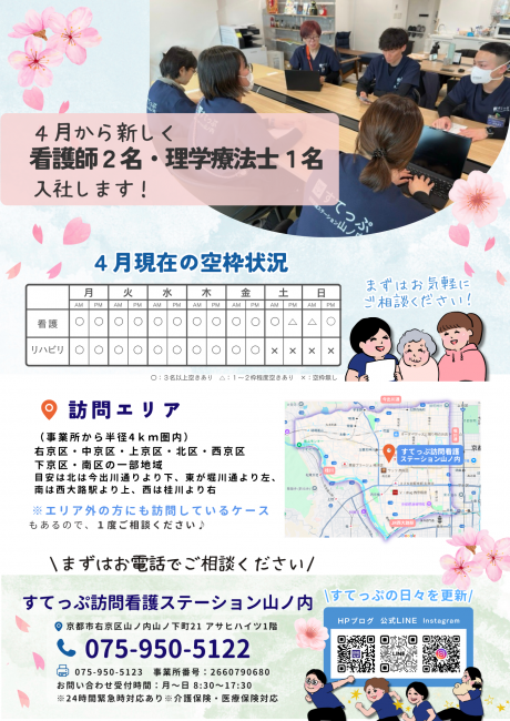 このたび、すてっぷ訪問看護ステーション山ノ内の4月チラシが完成いたしました🌸✨